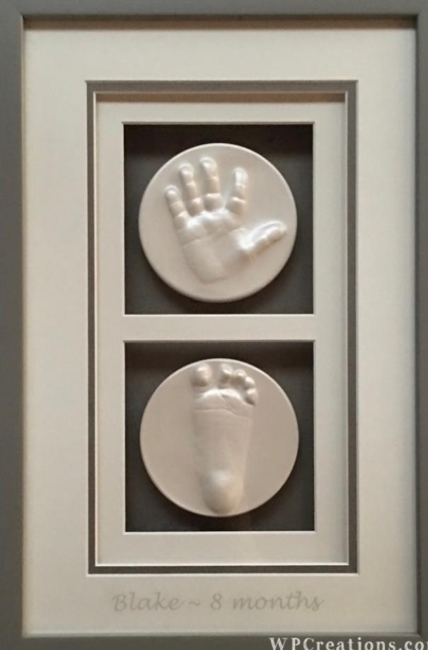 When my son was about 11 months I came across WP Creations at a vendor market. They captured my son’s hand and feet into a Raised Impression. To me, it was the best thing I could hold in time. Later when my daughter was born I patiently waited until she was about the same age and got her captured too!